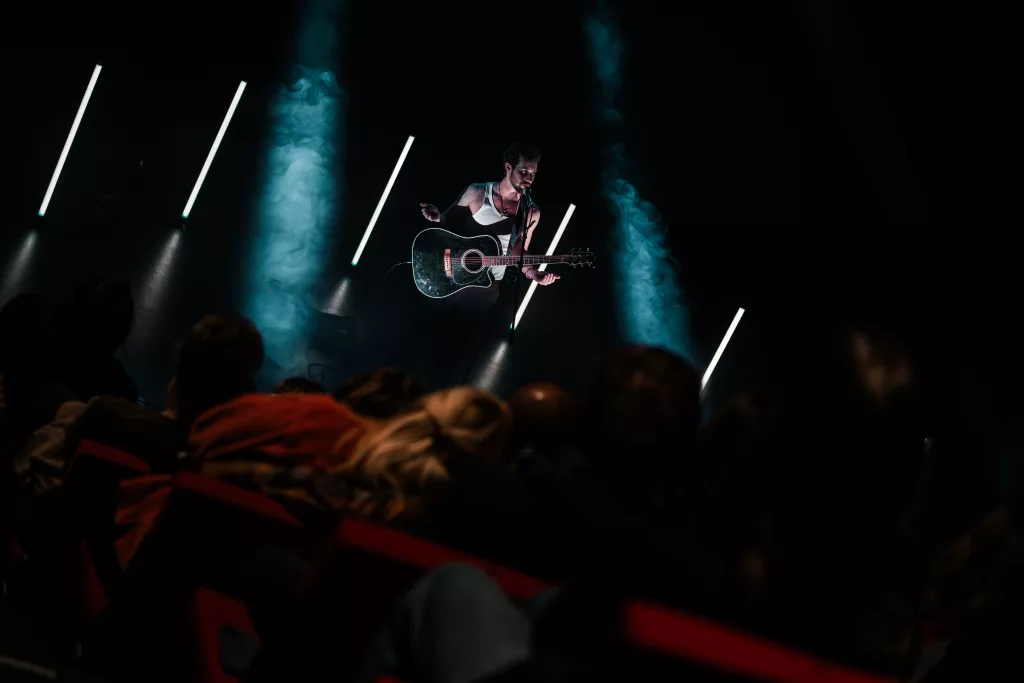 Dès les premières minutes, le fil conducteur du concert s’impose : l’intimité. Pas l’intimité fabriquée, mais celle qui naît d’un artiste qui se présente sans filtre, sans posture, presque comme s’il jouait « entre amis ». Luke parle, raconte, plaisante, se confie. Entre chaque titre, il ouvre une petite fenêtre sur son univers, ses doutes, ses obsessions musicales, notamment pour Buckley.