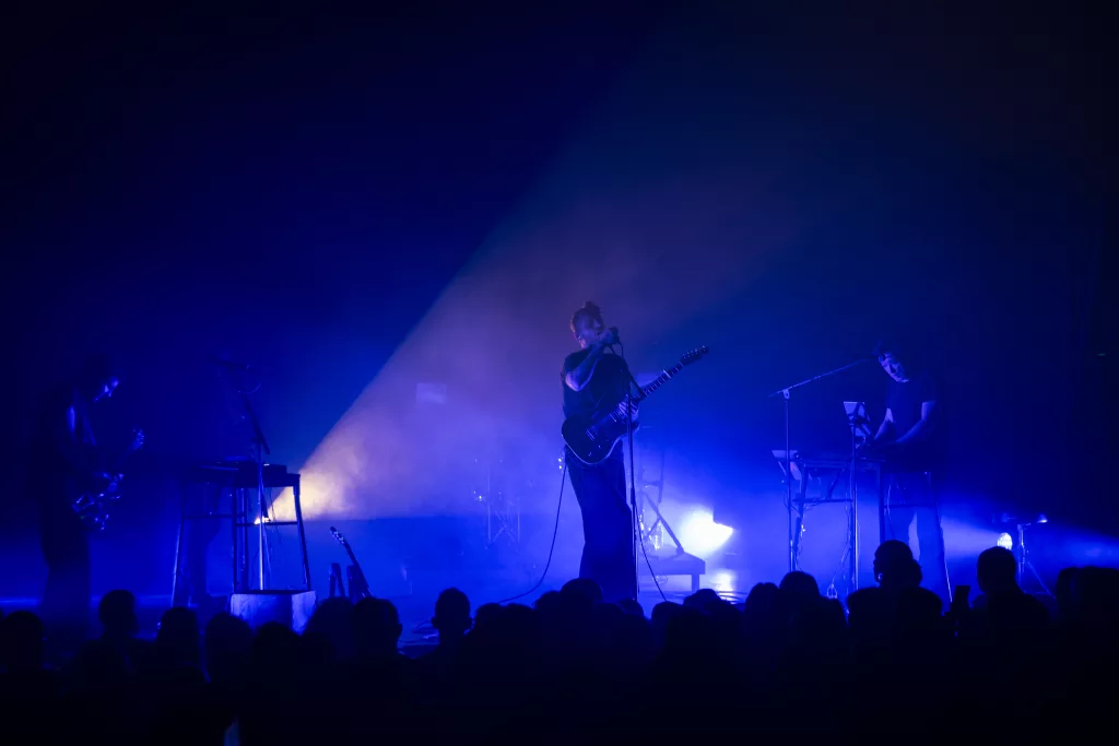 L’électronique passe ici au second plan, avalée par une matière sonore plus analogique, plus vivante, qui respire à travers chaque montée progressive. Et cette configuration marche, le public se laisse porter par chaque morceau tantôt progressif, tantôt ambiant. Ceci est encore plus extraordinaire quand on sait que la setlist est à grande majorité issue du nouvel album A Hum Of Maybe qui sortira le 20 février prochain, et donc, encore jamais entendue.