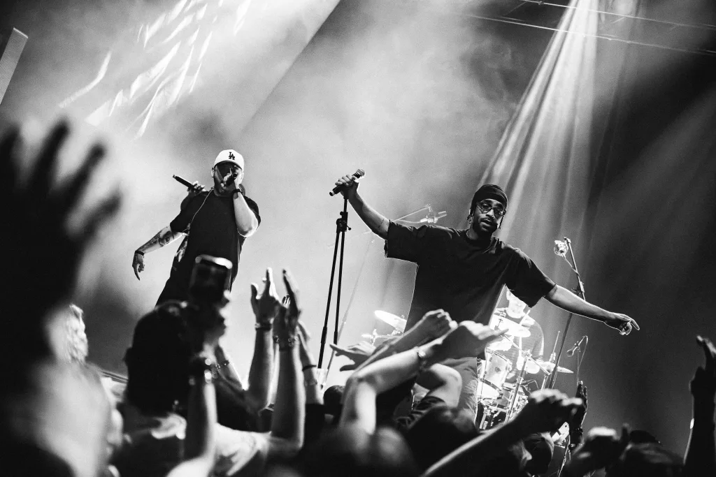 Rap et punk, drôle de combinaison musicale certains diront. Il s’agit pourtant une formule mêlant des composants, tous dignes du boom d’un orage d’été. C’est en balançant STATE (OF U) dès la première minute que les spectateurs ont rapidement compris que le moment qui suivrait allait être haut en rebondissements. Et dans une atmosphère plus détendue, en mode punk-rock, les six membres du groupe britannique ont interprété TOOTHSKIN.