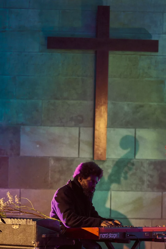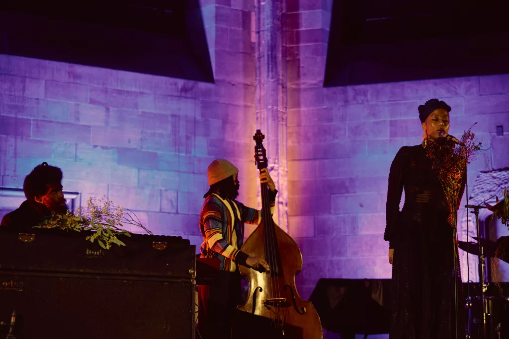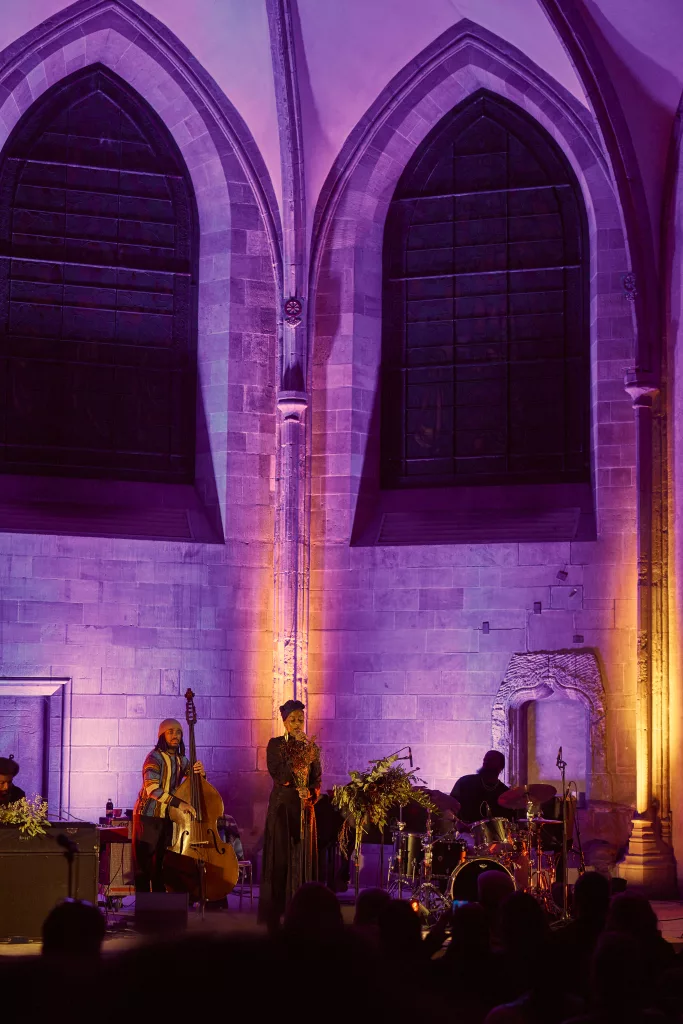 Si activisme et musique ont toujours été un couple proche, force est de constater qu’il fonctionne ici. Accompagnée d’un bassiste, d’un batteur et d’un pianiste, le quatuor a parfaitement su s’adapter au cadre réverbérant de dernière minute, celui d’un Temple de la Madeleine finalement intéressant pour les compositions proposées.