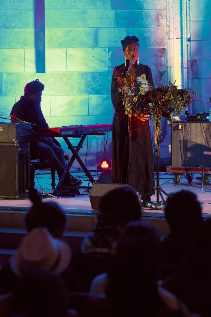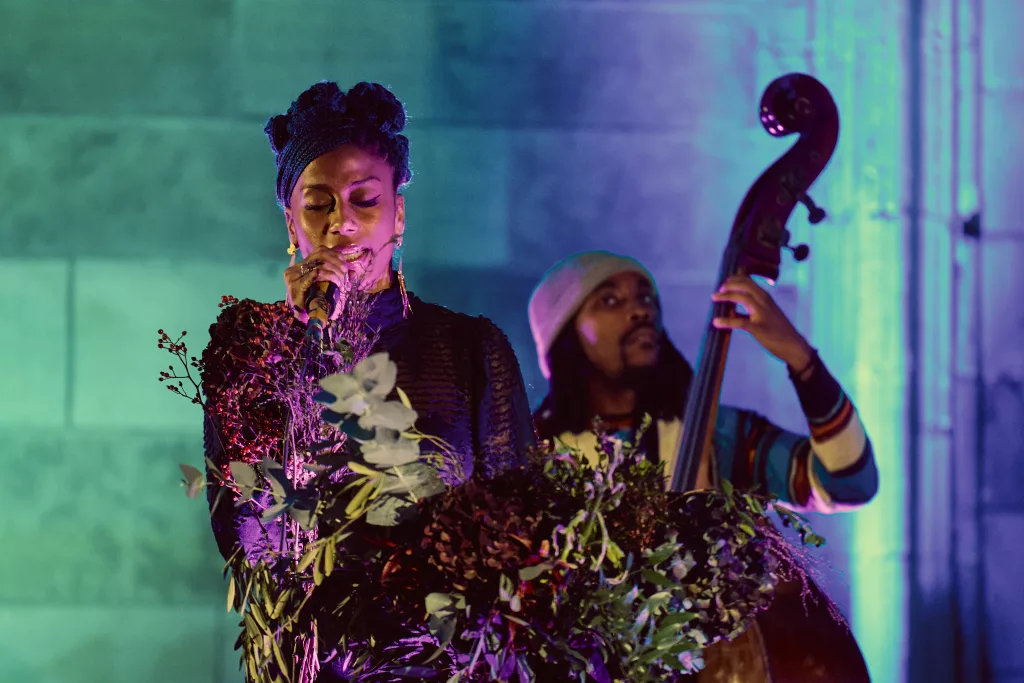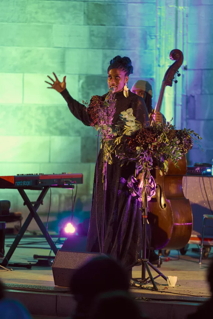 Ce changement de décor n’a, pour ainsi dire, pas perturbé la trentenaire. Le cadre muséal, dans le cadre de l’exposition Afrosonica au Musée d’Ethnographie de Genève, aurait sans doute mieux accompagné la puissance de ses mots. En effet, politique et sociologie prennent une part importante de son art. À l’aise sur scène, la poétesse a toutefois offert une prestation assurée… et surprenante pour les oreilles curieuses avides de blues et jazz.