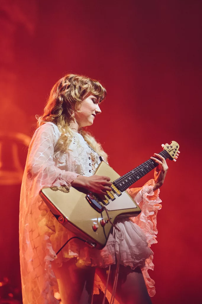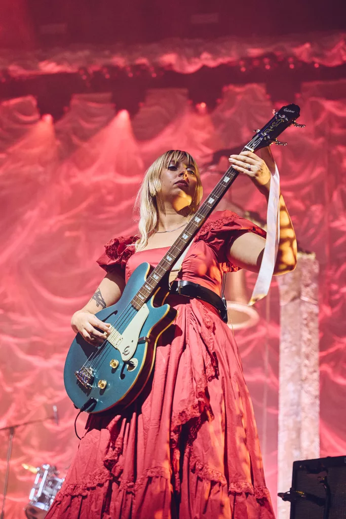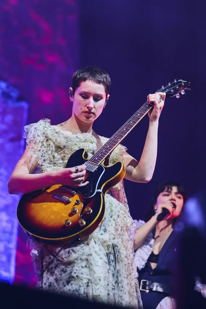 Retrouvez les meilleures images prises par Victor Perrin de la chanteuse Abigail Morris, la claviériste Aurora Nishevci, la bassiste Georgia Davies et des guitaristes Lizzie Mayland et Emily Roberts.