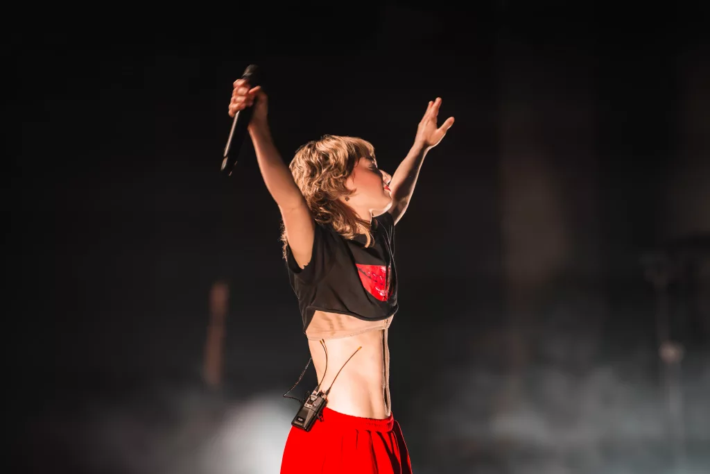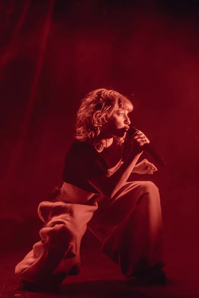 Celle qui a monté son propre label livre une pop auto-proclamée qui oscille entre instrumentations électro nerveuses et piano-voix suspendus. Zélie livre un show ultra-travaillé qu’elle entrecoupe de danse contemporaine, en restant très franche et drôle avec son audience. Le public est très réceptif et communique beaucoup avec elle.